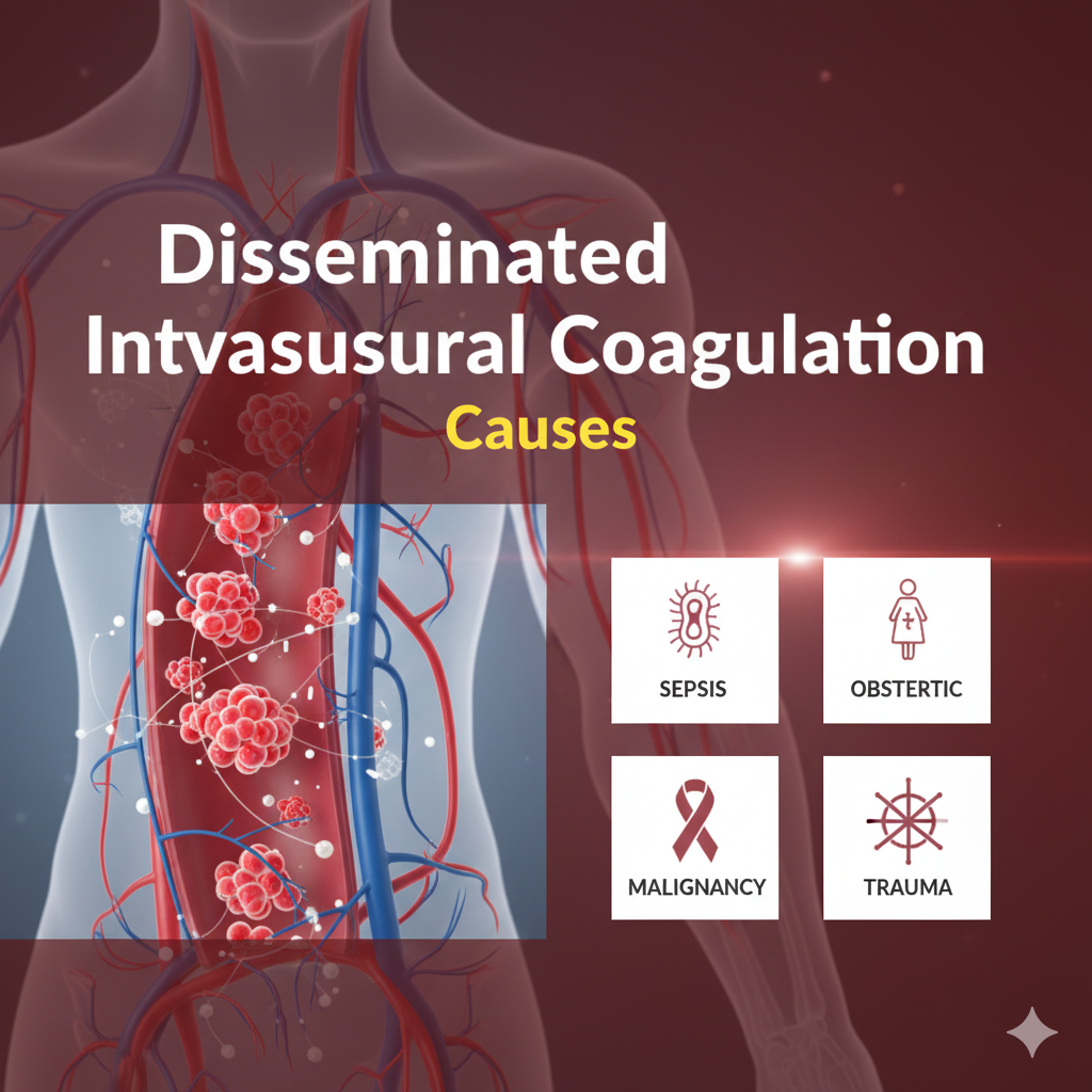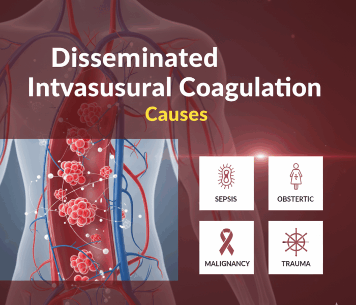 DIC is caused by another medical condition that makes the body’s normal blood clotting process become overactive. The condition progresses through two stages. In the early stages, overactive clotting leads to blood clots throughout the blood vessels. The clots can reduce or block blood flow, damaging organs. As DIC progresses, the overactive clotting uses up platelets and clotting factors, which are protein that help with normal blood clotting. Without these platelets and clotting factors, DIC can cause bleeding just beneath the skin, in the nose or mouth, or deep inside the body.