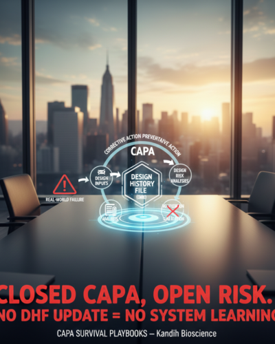 Inspectors test these linkages deliberately. When CAPAs close without DHF impact, FDA concludes that learning stopped where it mattered most: at the design level.